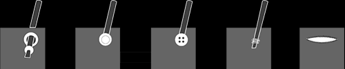 Varianten: Öse/Perle, Niete, Knopf, genäht, Stoff geschlitzt